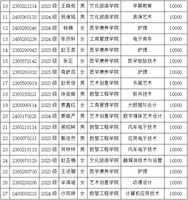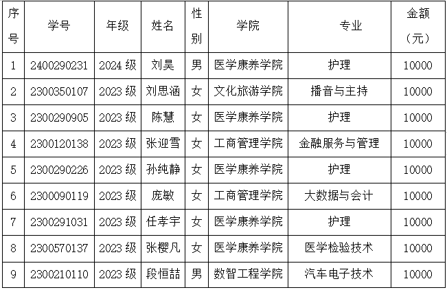 2024-2025学年高职国家奖学金获奖学生拟推荐名单